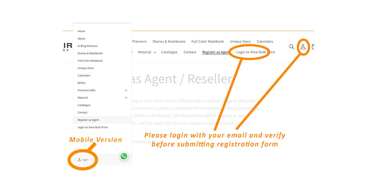 Kindly login to our customer page to verify email before WhatsApp us or Submitting form below to register for agent price list viewing. Kindly be noted that reseller pricing is subject to approval only. You can also login from the below button: